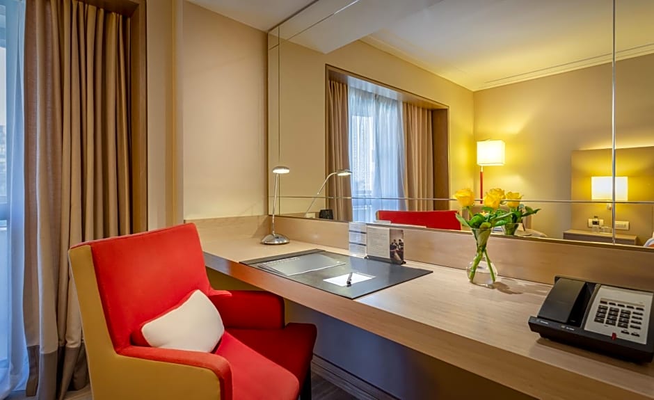 This newly renovated double/twin room features sophisticated furniture, a king size bed with luxurious Trussardi linen, a work desk, a mini-bar, air conditioning and a private bathroom fitted with a hairdryer and free toiletries. Please note that connecting rooms can be requested.